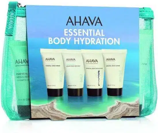 אהבה מארז נסיעות קרם גוף 40מ״ל + קרם ידיים 40מ״ל + גל רחצה 40מ״ל + מלח ים המלח 40מ״ל AHAVA Set Body Lotion 40ml + Body Wash 40ml + Hand Cream 40ml + Salt 40ml