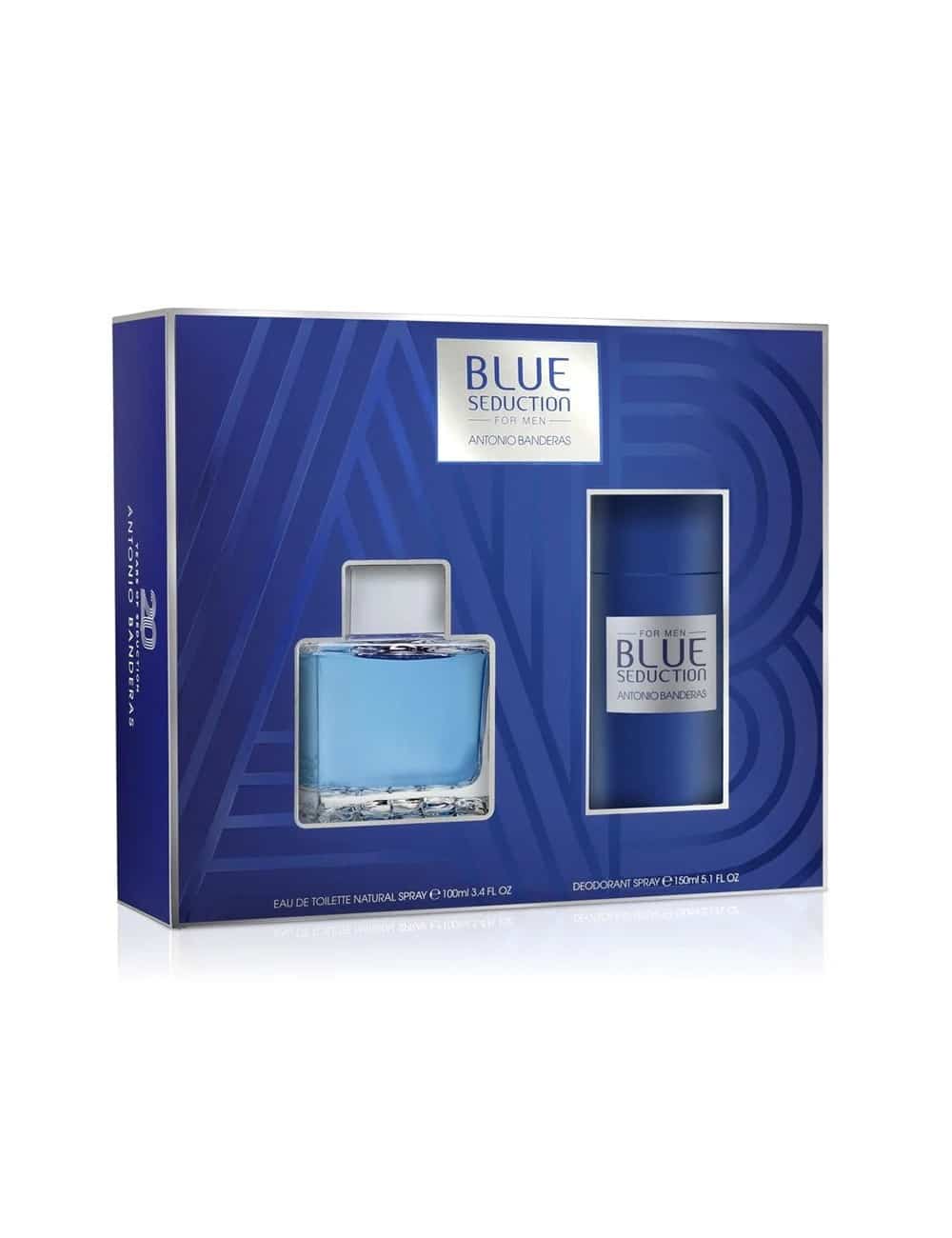 בושם לגבר אנטוניו בנדרס בושם אדט 100מל+ דאו ספריי 150מל Antonio Banderas Blue Seduction – Eau de Toilette 100 ml + 150 ml Deodorant