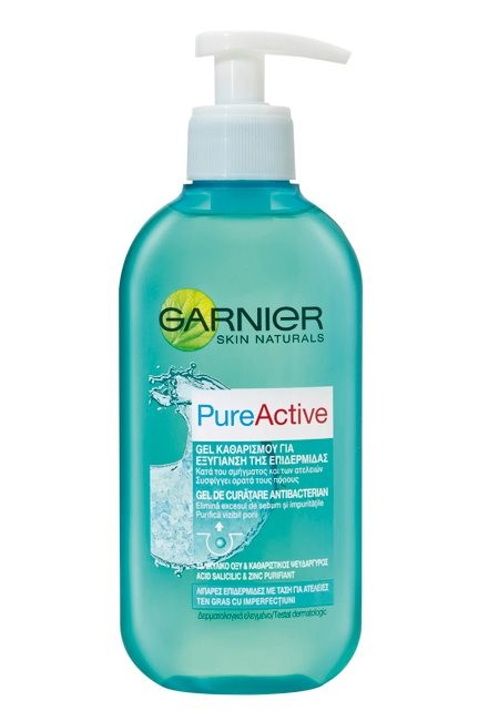 גרנייה פיור אקטיב גל ניקוי וטיהור ליור מעורב-שמן 200 מל GARNIER PURE SKIN CLEANSING GEL 200ML