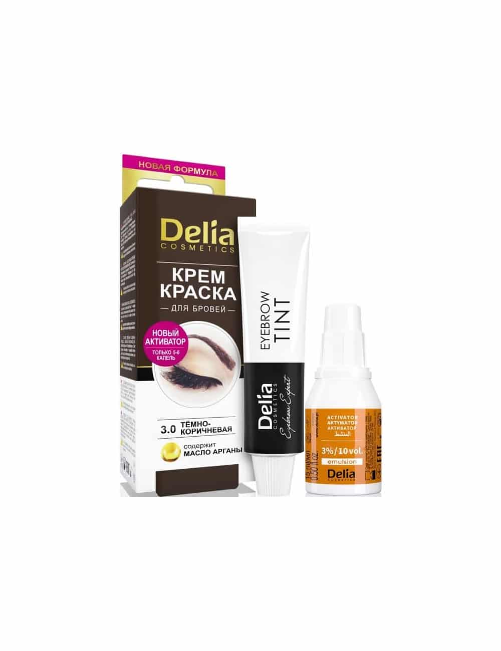 דליה קוסמטיקס ערכת צבע לגבות עם שמן ארגן גוון 3.0 חום כהה 15מ”ל DELIA COSMETICS COLOR CREAM EYEBROW 3.0 DARK BROWN 15ML