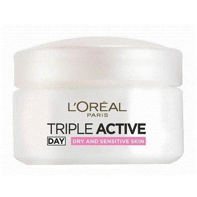 לוריאל טריפל אקטיב לחות ליום לעור יבש ועדין Triple Active Day For Dry&sensitive Loreal 24h