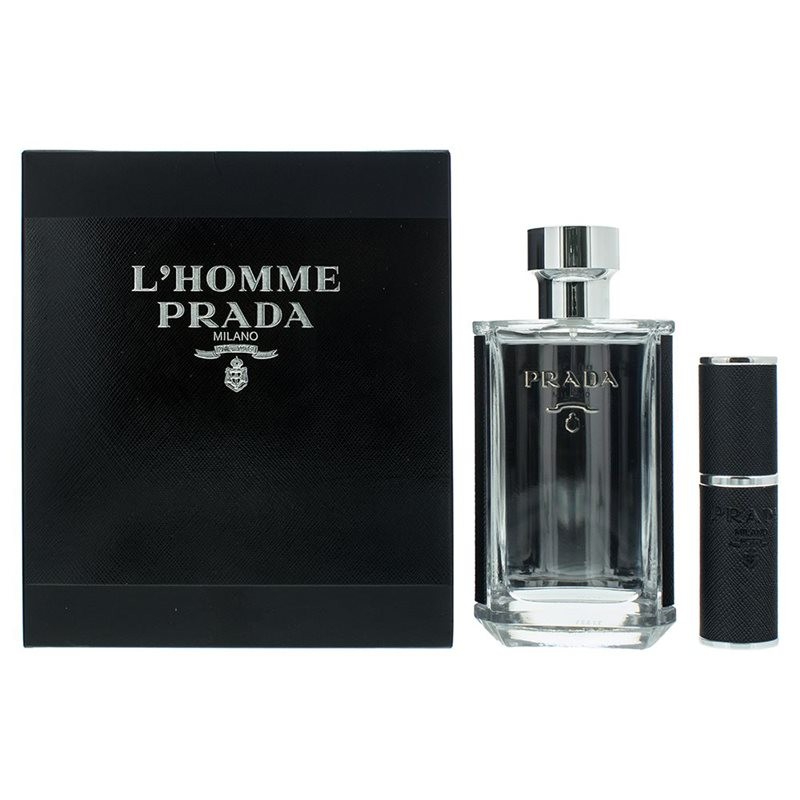 בושם לגבר פראדה מילאנו לגבר א.ד.ט בושם 100 מ”ל + בושם קטן 8 מ”ל Prada LHomme Prada EDT 100ml & EDT 8ml Spray Refillable