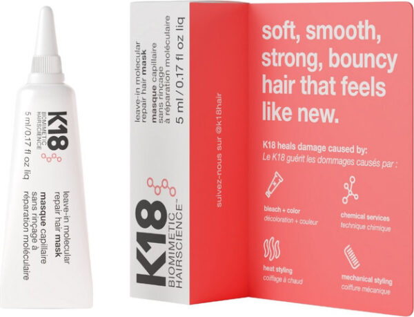 קיי 18 מסכה לתיקון ושיקום מולקולרי של השיער 5מ”ל K18 leave-in molecular repair hair mask 5ML