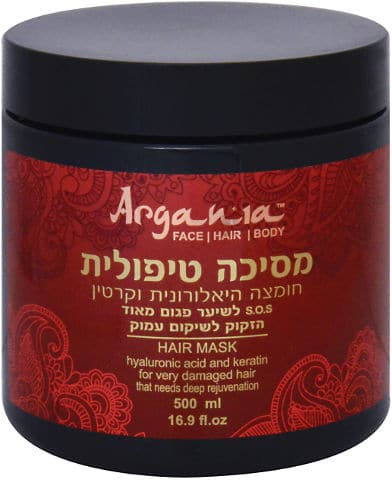 ARGANIA מסיכה טיפולית לשיער פגום מאוד מועשר בחומצה היאלורונית וקרטין ללא מלחים 500 מ”ל