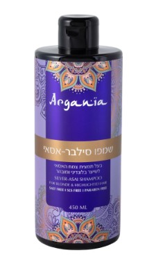 ARGANIA שמפו סילבר אסאי לשיער בלונדיני, צבוע, אפור ושיער שיבה 450 מ”ל